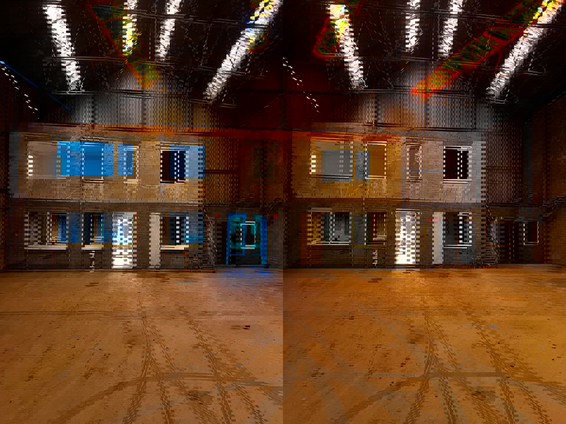 Dit bedrijfsgebouw bestaat uit een ruime magazijnhal van ± 4.004 m², aangevuld met kantoorruimtes op zowel het gelijkvloers als de verdieping. Het geheel bevindt zich op een perceel van ± 4.154 m², met voldoende manoeuvreerruimte voor vrachtverkeer en parkeergelegenheid.